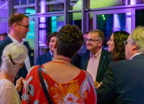 Im Anschluss ging es nahtlos über zur Aftershow-Party und dem Networking mit Persönlichkeiten des öffentlichen Lebens, darunter Lübecks Bürgermeister Jan Lindenau, Unternehmer:innen, Führungskräften und Marketingexpert:innen. Auch der Vertreter und Vizepräsident des Bundes Verband Marketing Clubs, Peter Brawand, und Beiratsvorsitzender Rolf Schwertfeger, waren angereist, um dieses besondere Ereignis zu feiern. Bei einem feinen Buffet vom Restaurant Newport lies es sich nach der Veranstaltung noch entspannt plaudern und netzwerken.