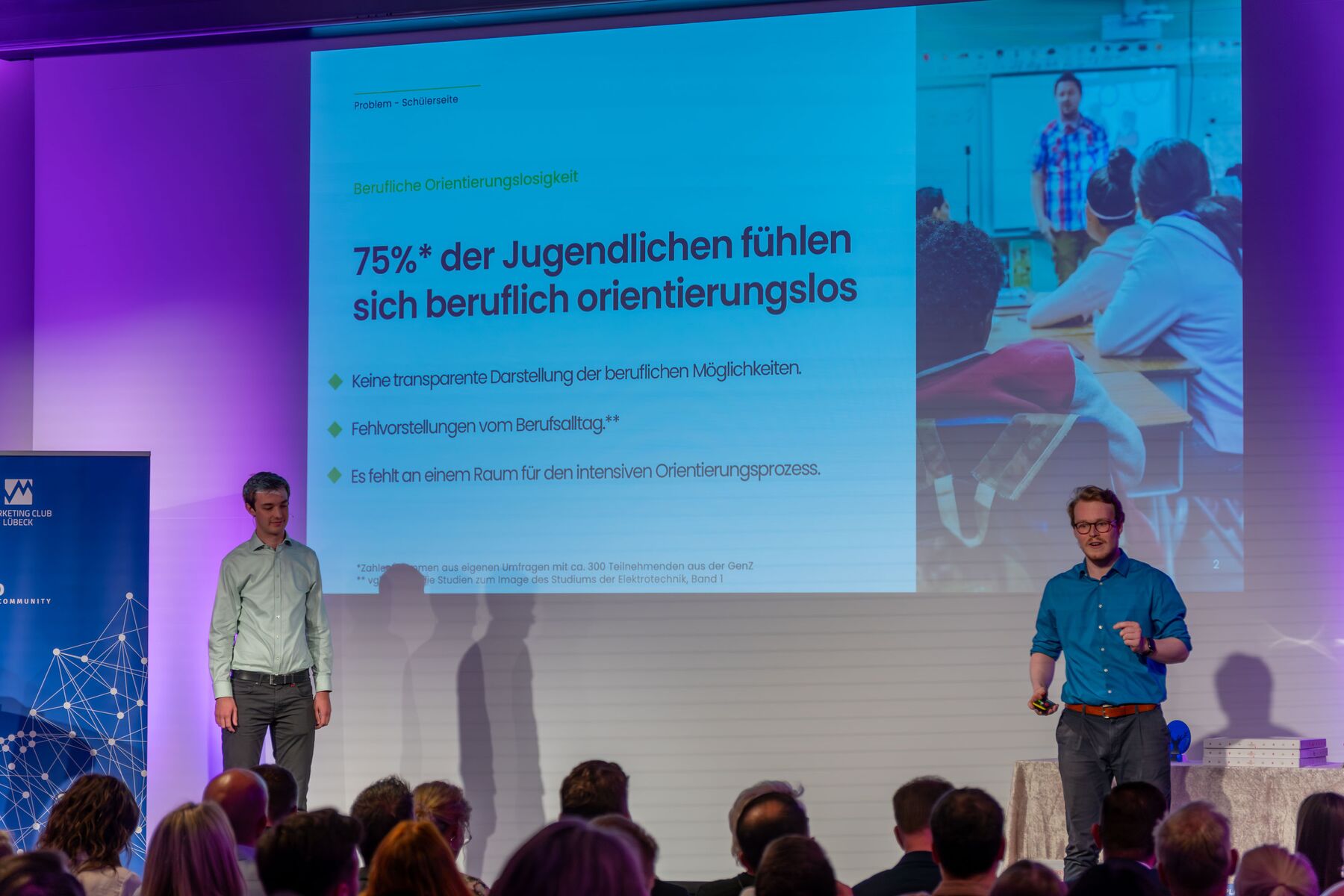 Sowohl das Publikum als auch die hochkarätig besetzte Expertenjury, bestehend aus Julia Carstens, Hagen Goldbeck, Prof. Dr. med. Gabriele Gillessen-Kaesbach, Dr. Astrid Bednarsky, Ilona Jarabek, Olivia Kempke und dem Präsidenten des Marketing Club Lübeck, hatten die schwierige Aufgabe, jeden Pitch anhand von sieben Kriterien auf einer Online-Plattform zu bewerten. Die Spannung blieb erhalten, bis das digitale Abstimmungstool die Ergebnisse von Expertenjury und Publikum zusammenführte und die verdienten Sieger ermittelte.