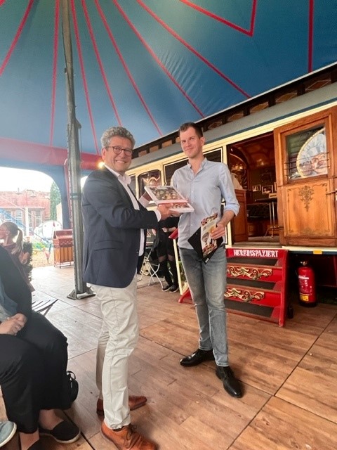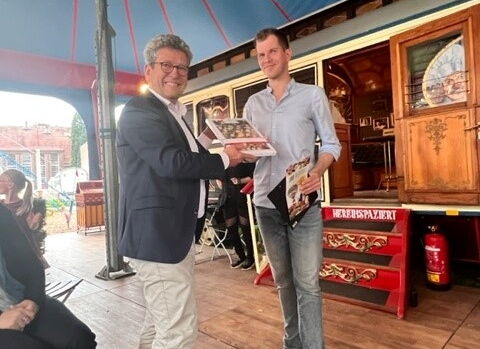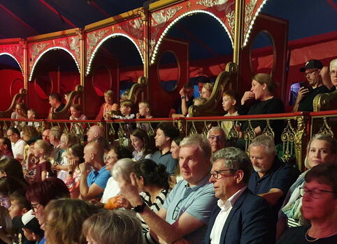 Und es gab einen Einblick in das Marketing von Roncalli, den uns Mathijs Te Kiefte gewährte. Er verantwortet die Leitung des Toureebüros und hat den Überblick über alle Aktivitäten vor Ort - für das Marketing, aber auch andere Themen die organisiert werden wollen. Zum Beispiel hat Roncalli inzwischen 6 Zelte, welche bereits in der nächsten Tournee-Stadt aufgebaut werden können, während die Vorstellungen noch am aktuellen Standort laufen. Nur die Technik gibt es nicht mehrfach, Licht, Ton usw. müssen schnell abgebaut werden und nachreisen - mit dem Zug, wie alles andere auch. Ein wichtiger Marketing-Faktor für Roncalli sind auf jeden Fall die Standorte in den jeweiligen Städten, so wie in Lübeck der Holstentorplatz. Roncalli möchte da präsent sein, wo das Stadtleben stattfindet und man mitten drin ist. Das bedeutet für Lübeck zum Beispiel aber auch Maßarbeit beim Aufbau, da wenig Platz rundherum ist. Aber laut Mathijs Te Kiefte lohnt sich das auf jeden Fall und am Standort Holstentorplatz wird nun auch in Lübeck schon lange festgehalten. Übrigens kommen hinterher, wenn Roncalli abgereist ist, die Landschaftsgärtner und bringen die Fläche wieder in Ordnung.