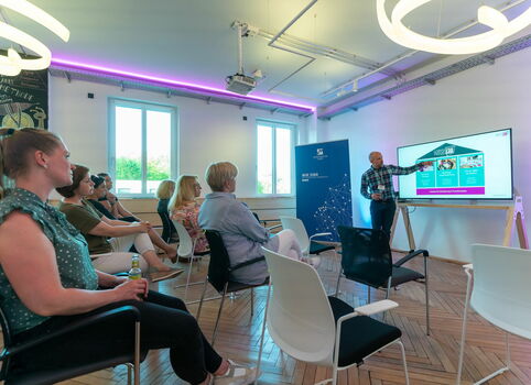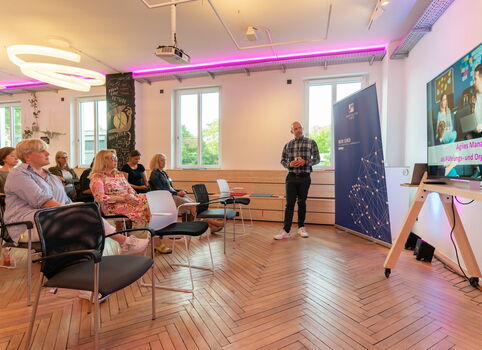 Dieses Mal waren wir vom Marketing-Club Lübeck im HanseLab zu Gast. Das HanseLab soll Mensch, Raum, Methode so wirksam zu verbinden, dass sich Wandel und Veränderung natürlich(er) anfühlen und Organisationen und Teams zu einer beweglichen Denkhaltung, die innovatives Handeln fördert befähigen. Hier wird Agilität und das Begleiten von Veränderungen gelebt.
