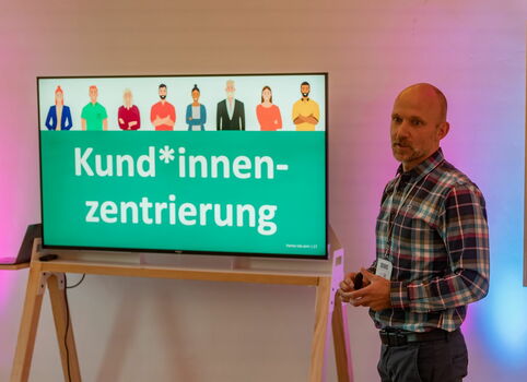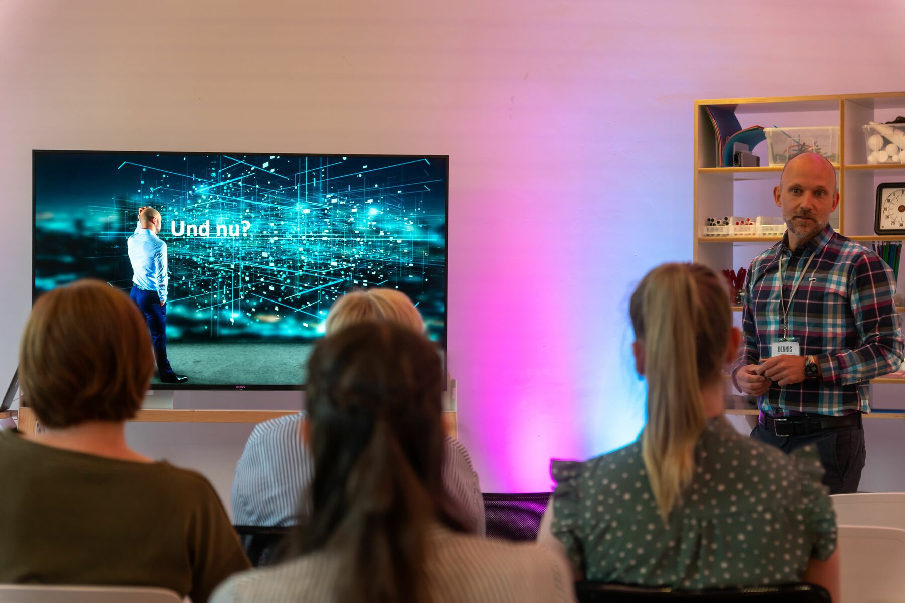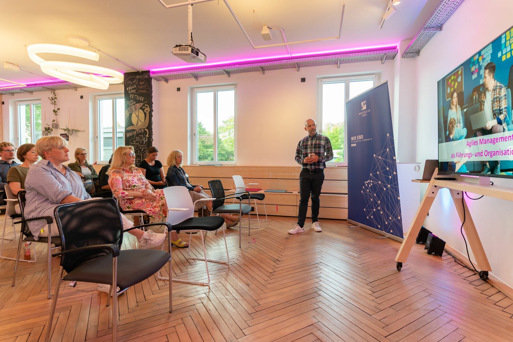 Dennis Evers vom HanseLab hat uns dazu einen Vortrag zum Agilen Management als Führungs- und Organisationsprinzip gehalten. Dabei hat er Fragen beantwortet, wie z.B. „Wie gelingt Innovation von innen?“ „Wie kann man Agilität verstehen und anwenden?“ „Wie gelingt es, komplexe Themen begreifbar zu machen, alle Mitarbeiter einzubinden und mit viel Verantwortung selbst zu gestalten?“