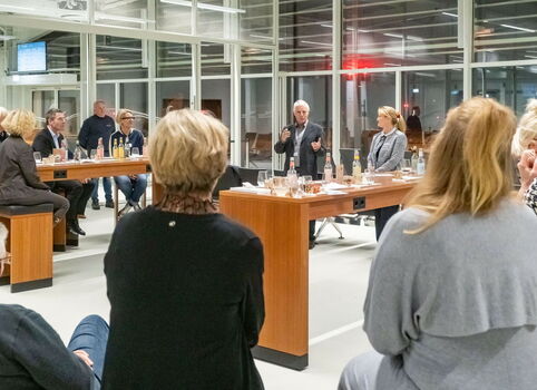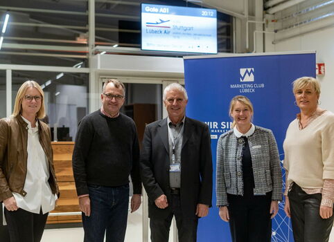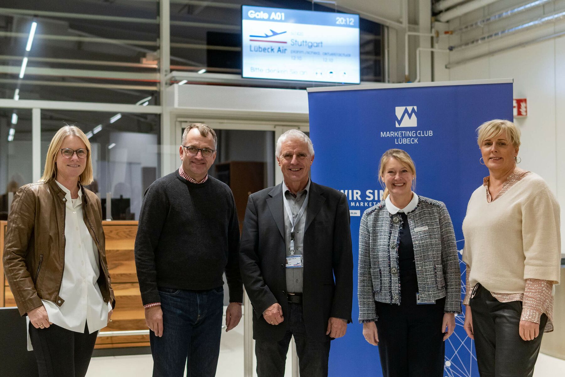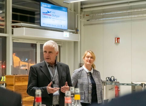 Flughafen-Geschäftsführer Prof. Jürgen Friedel, Celina Keil, Projektentwicklung Lübeck Air und Stefanie Eggers, zuständig für Presse und Marketing, berichteten dann über den aktuellen Stand des Fluggeschehens und gaben einen Einblick in die spannenden Zukunftspläne.